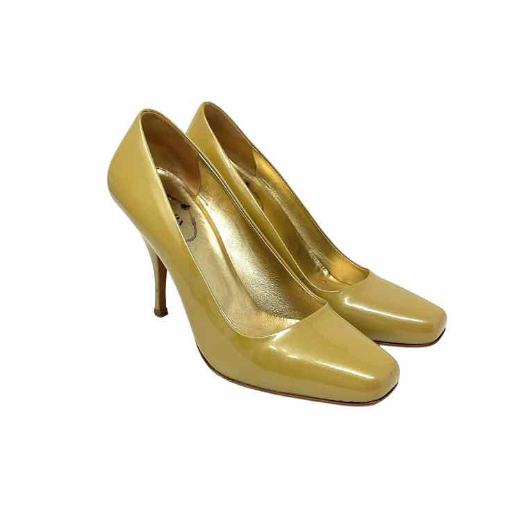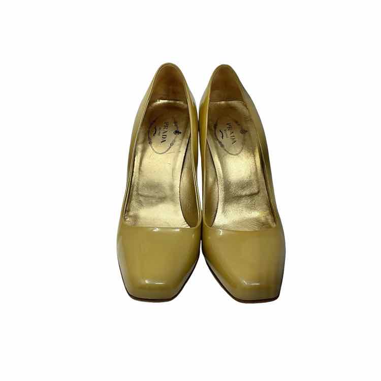 Prada Size 37 1/2 Gold PATENT LEATHER AS IS Womens Heel
